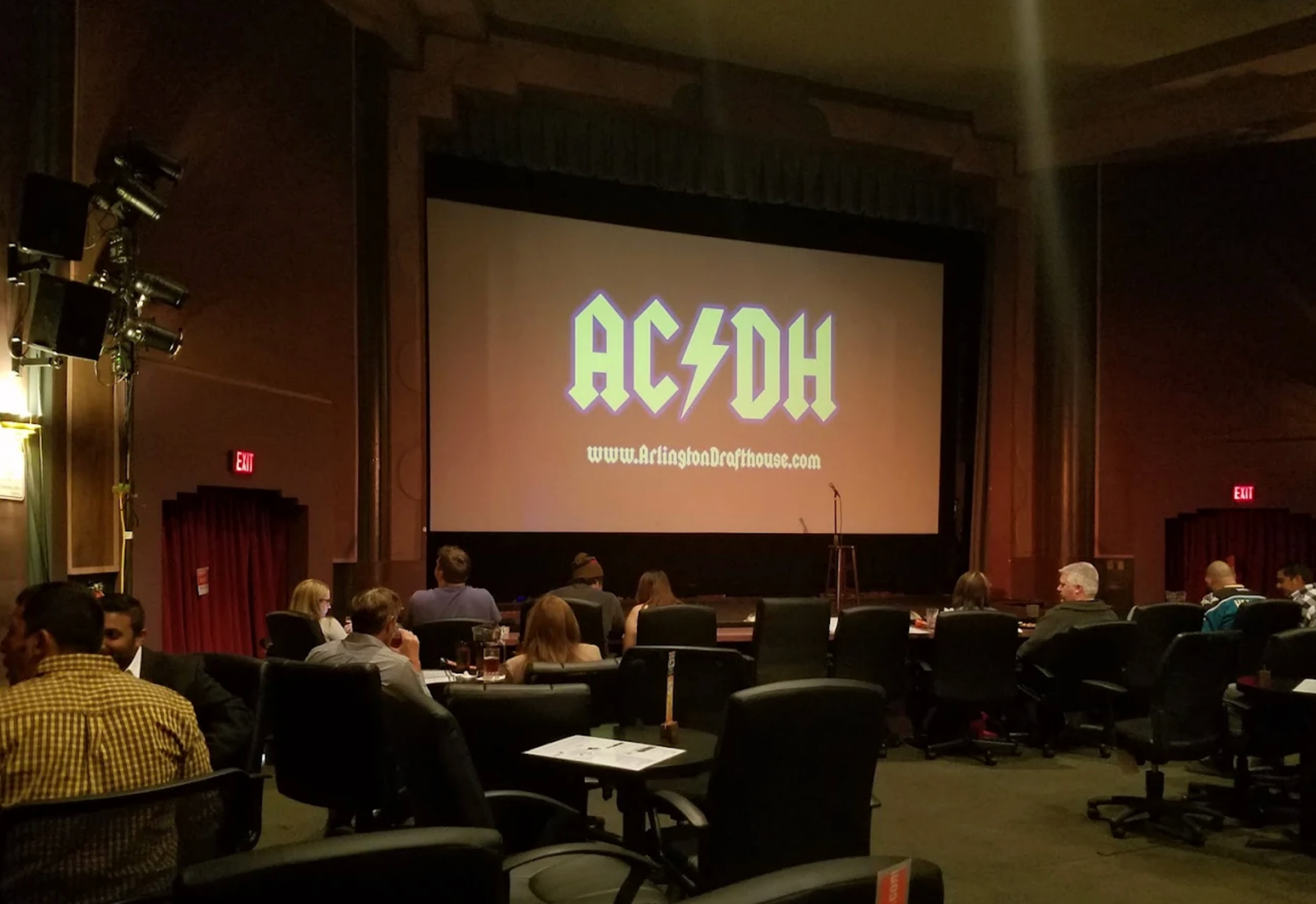Arlington Cinema & Drafthouse venue is a cozy, mid-sized spot with that classic drafthouse vibe: comfy seats, table-side service, a full bar, and legit pub grub—burgers, wings, nachos, pretzel sticks, wraps, and plenty of craft beer—to keep the laughs (and the live vibes) going strong. It’s a perfectly sized theater, so there really aren’t any bad seats; you’re always close enough to feel the room’s energy without that cold, soulless arena distance.