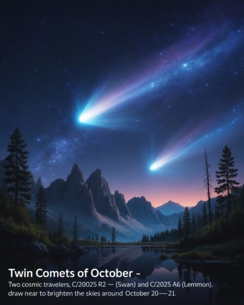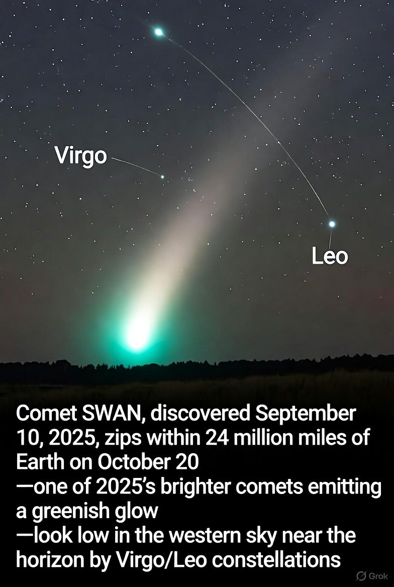 This October 2025, two bright comets—(SWAN) and (Lemmon)—light up the sky, creating a once-in-at-least-couple-decades cosmic show. Actually, we might even have a third comet joining the party! Ashbrook-Jackson, may appear in late October—you see, predicting comets is a challenging science. If that happens and we score a triple comet convergence, it could be decades (or centuries) before it repeats, unless… the universe throws us a curveball sooner. Science is hard, knowledge increases, comets can be unpredictable, and their orbits don’t always stick to the script!